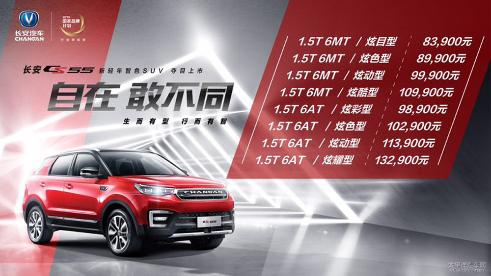 在中国北京时间7月26日,北京长安CS55正式上市,共发布8款车系,包含手动档和自动档汽车各四款,最少配市场价为8.39万余元,而最大配的价钱为13.29万余元。