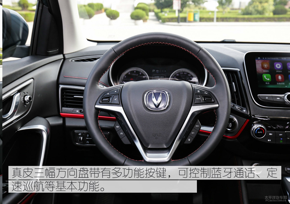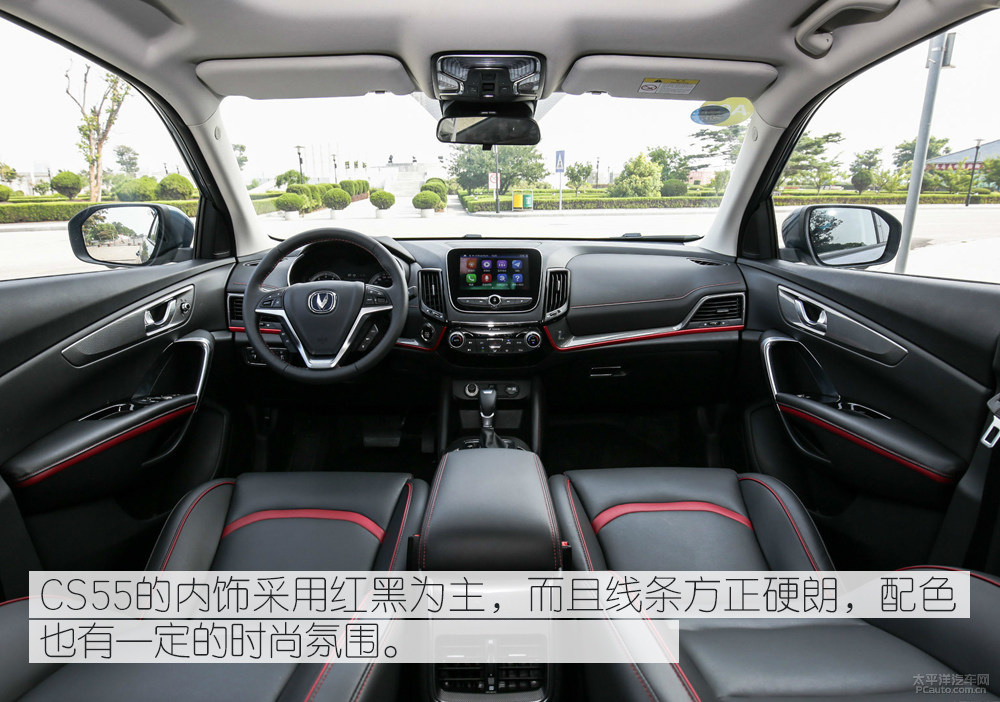 车内饰层面,北京长安CS55维持了家族化的设计方案,带主题风格色调的装饰设计条提高了车里的时尚潮流气场,并且线框具有质感,合乎年青人的审美观。
