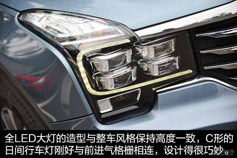 传祺汽车GS8选用光与影雕塑作品2.0设计构思,外型空气,霸气侧漏感十足。四条粗不锈钢饰条进气格栅看起来层次感很强,且颇具能量,一股硬朗SUV风迎面而来。全LED大灯的造型设计也是有棱有角,颇有气魄。尾端的设计方案也更圆润厚实,与车前的造型设计维持了设计风格上的一致。