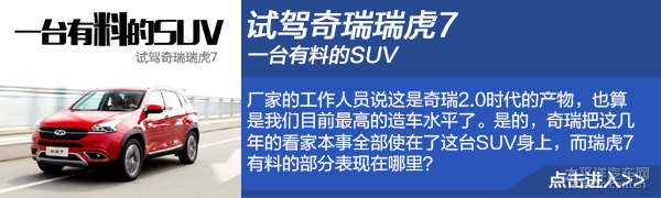 假如你要更为深层次地掌握奇瑞瑞虎7的基本信息,何不点一下正下方连接阅读文章奇瑞瑞虎7的试架文章内容,坚信会让你产生更为真切的体会。