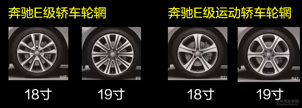 全新升级奔驰E级依据小汽车和运动轿车一共出示四种轮圈款式。