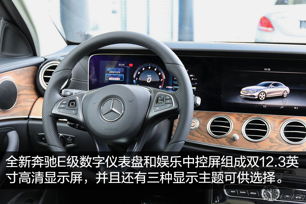 在舒服便捷配备层面,最先全新升级奔驰E级初次汽车方向盘触控板,次之数据车内仪表盘和游戏娱乐中控屏联接一起相互组成12.3英寸智能化高清显示屏。此外在操纵配备上,全新升级奔驰E级配用