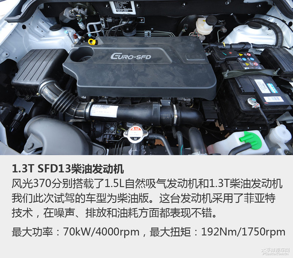 柴油发动机醒面现阶段己知配用2款编号各自为SFG15-01/SFG15-02的1.5L发动机,2款柴油发动机调试略微不一样以相匹配国Ⅳ/国Ⅴ的环保标准,它的至大功率85kW(116PS),最大扭矩转速147.5Nm。此外,明年初风光370还将配置一台柴油机涡轮增压器柴油发动机,它选用了菲亚特的驱动力技术性,汽柴油主要表现更强一些。而传动系统一部分则所有配对5速手动变速器。(详尽试架文章内容请点这儿)