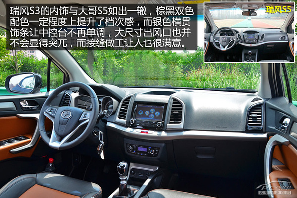 瑞风S3的关键车内饰跟哥哥S5有80%的相似性,但是在部分干了相对的再设计方案,少了一丝圆滑,多了些“棱角分明”的性情,对比这也更合适它的总体目标受众群体——追求完美个性化的年青人群。