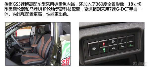 GS5速博虽做为全新升级的车系,但以内饰层面与该款GS5基础保持一致。自然,在坐椅的色调设计方案及其一些新科技配备上仍然能看得出二者的区别。新公布标配车系黑灰色车内饰暂没有实拍视频和官方网照片,因此 这儿没法做出展现,升级实拍视频以后大家将第一时间补充照片。