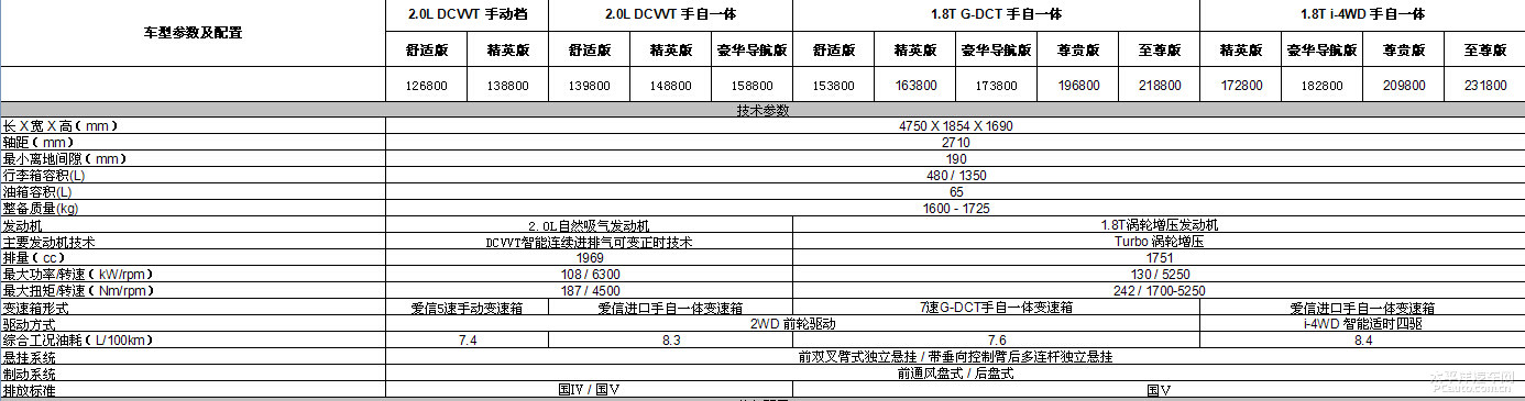 | 1.8T i-4WD 手自一体 | 精锐版 | 17.28 |