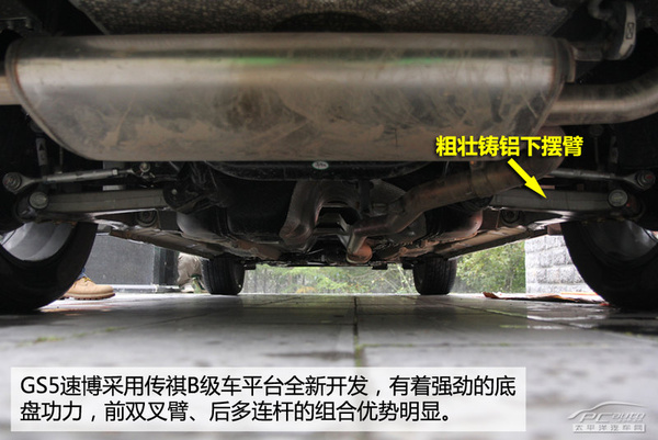 GS5速博选用传祺B级车服务平台全新升级开发设计,拥有 强悍的汽车底盘功底,前双叉臂、后多连杆的组成优点显著,相比平级很多车系选用前麦弗逊后多连杆出色。