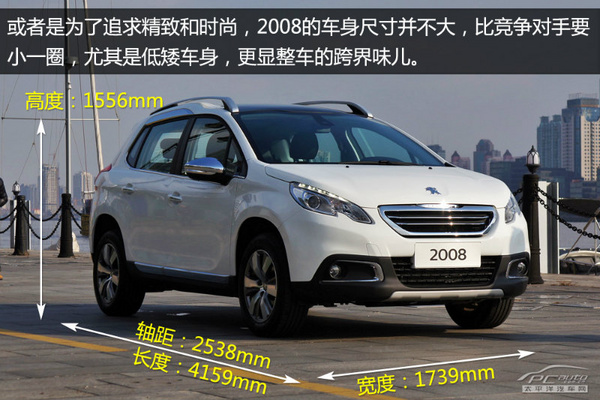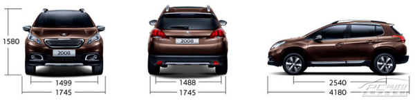 以大幅美是人民的审美观习惯性,殊不知2008敢于创新,规格在平级中算作小巧玲珑,尺寸4159×1739×1556毫米,轮距2538毫米,偏矮的车体让这个提升了汽车底盘的SUV看起来很跨界营销设计风格。