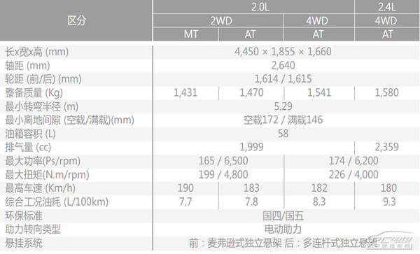 | 2.0L | GL | 5MT | 2WD | 16.48 |