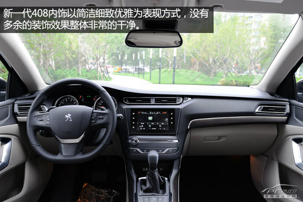 新一代408的车内饰注重简约与细腻,总体车内饰减缩不锈钢装饰设计件的应用,在较为重要的位置用极其简易的不锈钢线框开展刻画,做到恰如其分的雅致。在汽车方向盘及其坐椅总体布料上也是有新的风 格。 总体来说意外惊喜许多。