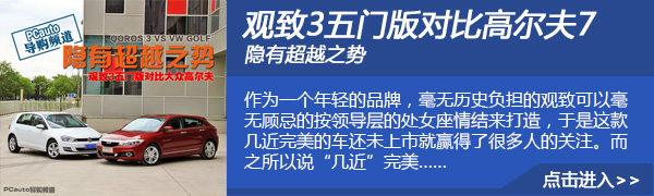 观致3五门版的总体目标敌人是福特汽车新福克斯、科鲁兹掀背车,还包含大众朗行、大众高尔夫、日产骐达、别克英朗XT、马自达汽车昂克赛拉等,这种车系全是紧凑型级车系中关注度较为高的两厢车型。观致3五门版和敌人较为,车体规格层面总宽占了非常大优点。轮距为2690mm,和日产骐达及其昂克赛拉仅有10毫米的差别,整体而言观致3五门版和敌人对比规格上能够 算有效的水准。