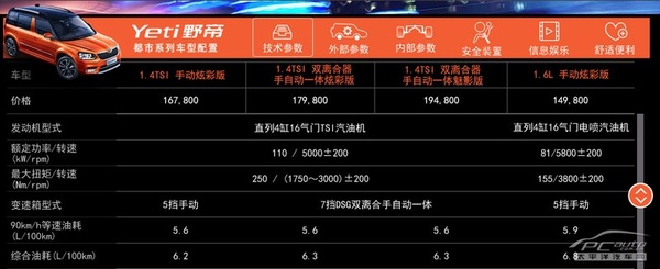 ● 斯柯达野帝Yeti都是系列产品配备剖析