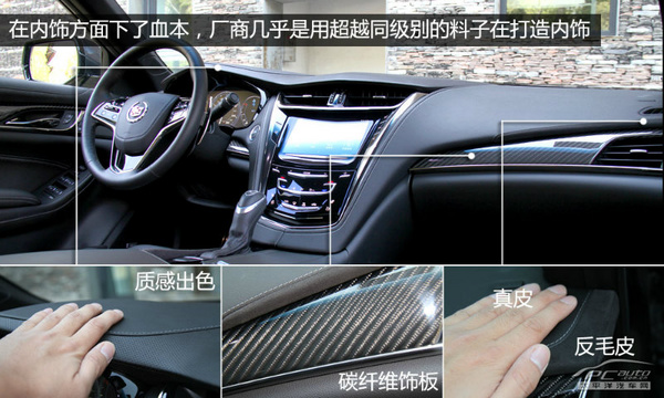 在材料用材层面凯迪拉克汽车CTS十分“狠”,生产商基本上是用跨越平级其他毛料在打造出车内饰,顶层仪表台基本上选用了牛皮包囊,中间也安裝了有碳纤维材料装饰板做为装饰设计,门边框位置也是一样的材料,在同级別内的确有非常大的优点。