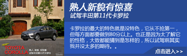 ●新一代卡罗拉介绍(注:因为拍攝時间较早,图例中“该款卡罗拉”即旧款的第十代车系,请谅解)