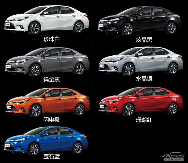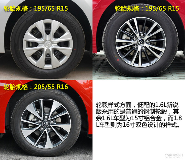 车体颜色层面得以反映雷凌比新卡罗拉更加年青的精准定位,在其中电闪橙、珊瑚色及其宝石蓝三种时尚潮流鲜丽的色调赢得了许多 年青顾客的钟爱。轮圈款式层面,标配的1.6L新势力版选用的是一般的钢质轮圈,其他1.6L车型为15寸铝合金型材,而1.8L车型则为16寸两色设计方案的款式。此外值得一提的是,雷凌全系列都含有全规格的备用胎。