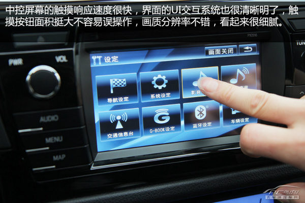 中控台是选用柔性的搪塑材料,尽管其触感仍稍为偏硬,但终归要比这些弥漫着便宜感的硬质的塑胶要好很多。从上到下三层式的中控台布局清楚一目了然,极致的斜线刻画出一丝新潮的现代感,多媒体系统区的灰黑色钢琴漆控制面板也为提高层次感大大加分许多 。而中控台含有的丰田汽车的G-book智能化副驾系统软件也给驾驶出行的便捷和安全性产生确保。