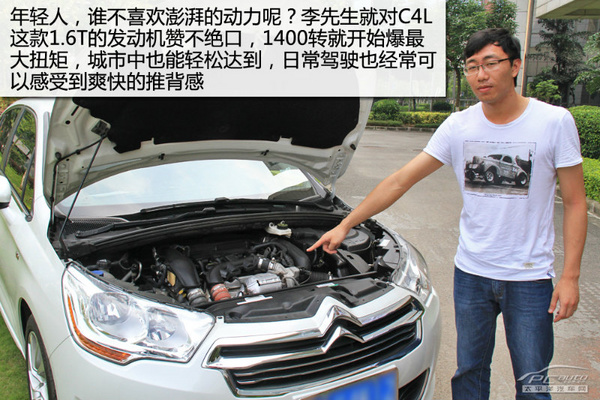 刘先生表明,车给人的第一印象十分关键,因为以前对法国车的设计方案不太发烧感冒,因此购车的情况下第一时间就清除了法系车。但之后见到雪铁龙C4L的情况下就一下子摆脱了法系车交给刘先生的原有品牌形象,感觉这新款车十分地年青和炫酷,很合适自身。