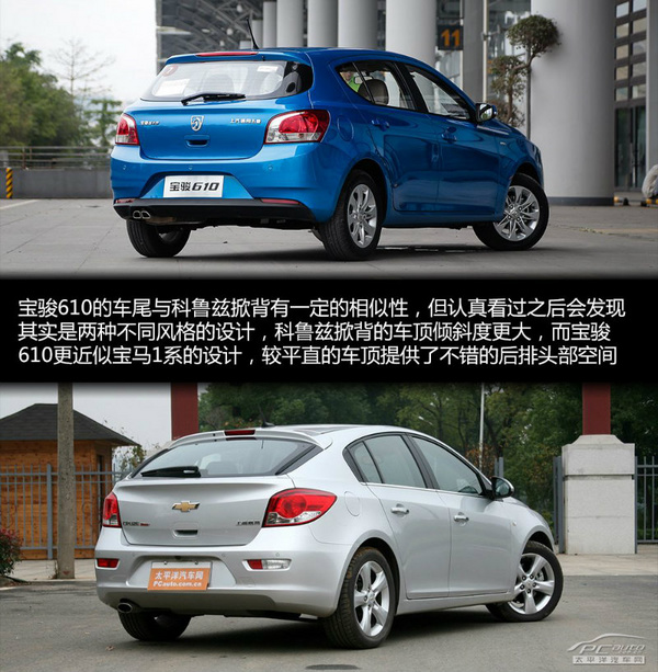 也许你能感觉这一后尾机缘巧合,的确,宝骏610的后尾与科鲁兹有一定的相似度,但用心看了以后会发觉实际上是二种不一样设计风格的设计方案,科鲁兹掀背的车子顶部坡度更大,更贴近三厢三厢车,而宝骏610则是规范的两厢车型,更类似宝马1系的设计方案,竖直的车子顶部也为后排座出示了非常好的头顶部室内空间。
