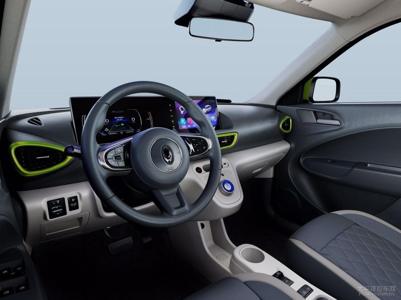 从车门看来,欧拉R2选用了升降式的车窗玻璃和内藏式把手设计,降低附加的视觉效果斜面;而前后左右悬长短较短,这有益于乘座室内空间的利润最大化。