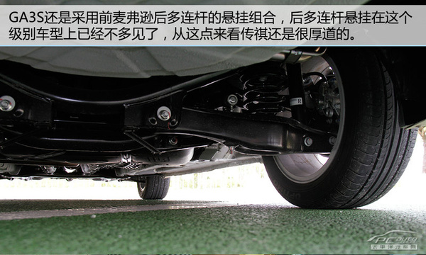 虽然是选用EPS电子助力转为,但开了的情况下会觉得GA3S的转为幅度并无想像中轻柔,尤其是在汽车行使时可靠性较强,滤震性也还好。而前麦弗逊后多连杆的悬架组成(前后左右带防倾杆)在这个级別这一价格的车系早已不常见了,难能可贵GA3S能那么良心,给个赞。