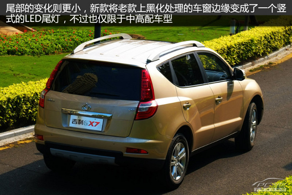 2014款的吉利GX7在旧款的基本上选用了大家《均衡的选择 导购组众编辑体验全球鹰GX7》碰到的汽车4S店改装的坚式LED后尾灯,层次感更加明显,另外也更霸气侧漏。