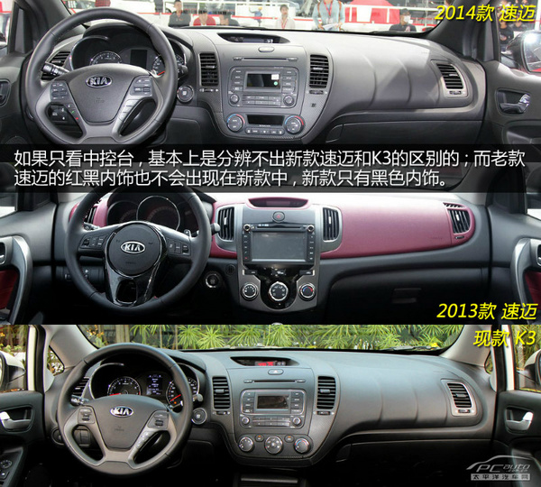 前边说来到速迈与K3的关联,因此这儿见到速迈与K3基本上一样的车内饰设计方案也就不奇怪了,仅仅在最新款速迈车内饰颜色上没了旧款的骚性红黑搭配,针对一款二门Coupe车系而言,看起来一些不足吸引住目光。
