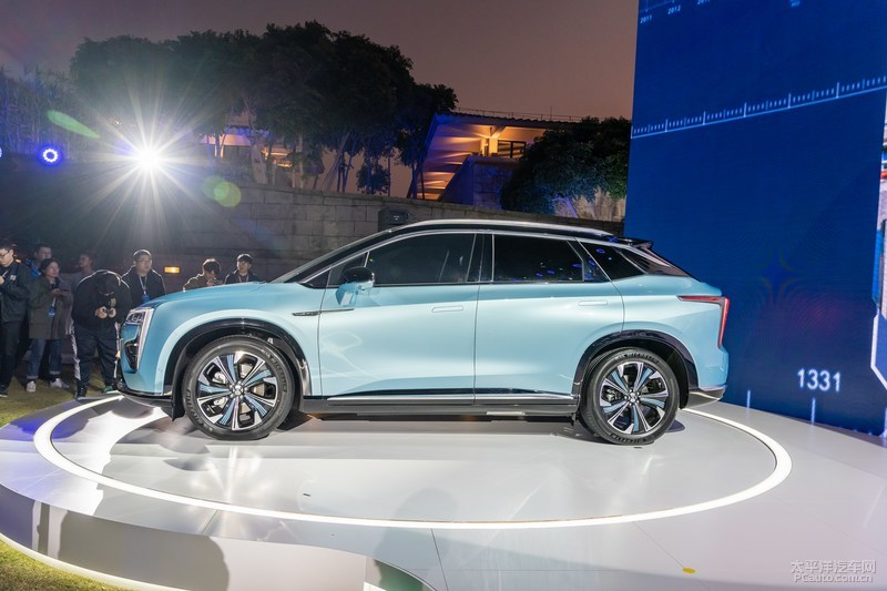 新汽车在造型设计上融合了广汽新能源Aion LX和蔚来汽车ES的造型设计原素,车前选用扁平化图标构思,与蔚来汽车ES系列产品有如出一辙之妙,长细的车灯组也进一步横着拉申了车前,两边的LED日间行灯融进了数据“7”的设计风格,车前好几处选用银白色和灰黑色装饰设计,看上去比蔚来汽车ES系列产品精美许多。