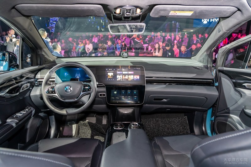 新汽车也配置了类似蔚来汽车nomi智能化车截智能机器人,它的姓名叫小CAN,前座坐椅选用一体式设计方案,主副驾均适用多向电动式调整,坐椅上还装有品牌英文“HYCAN”的标志。