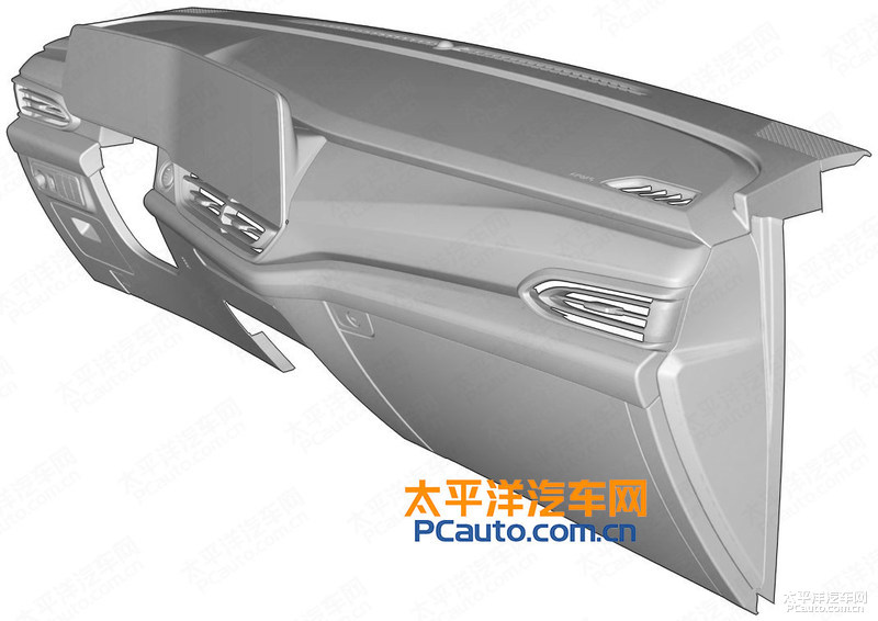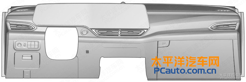 从专利权图看来,新车内装饰较大 的闪光点就是带折边的连屏设计方案,且中控台显示器一部分较全液晶显示屏仪表盘略大,中控台显示器房屋朝向司机一侧。车里别的一部分设计方案简约,但是仪表台下半一部分仍未出現在专利权图上。