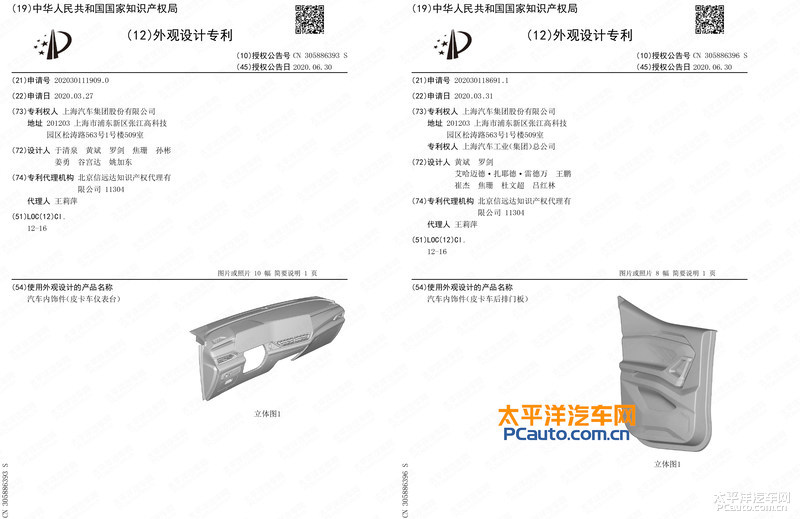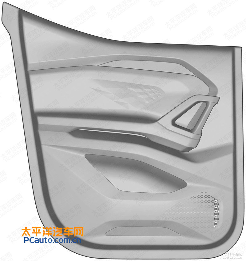 在另外申请办理的皮卡车型后排座门边框上,吗能够 见到造型设计精美装饰花纹和音箱。因此新汽车为双排座皮卡车型,且进一步确认了其比较高档的精准定位。
