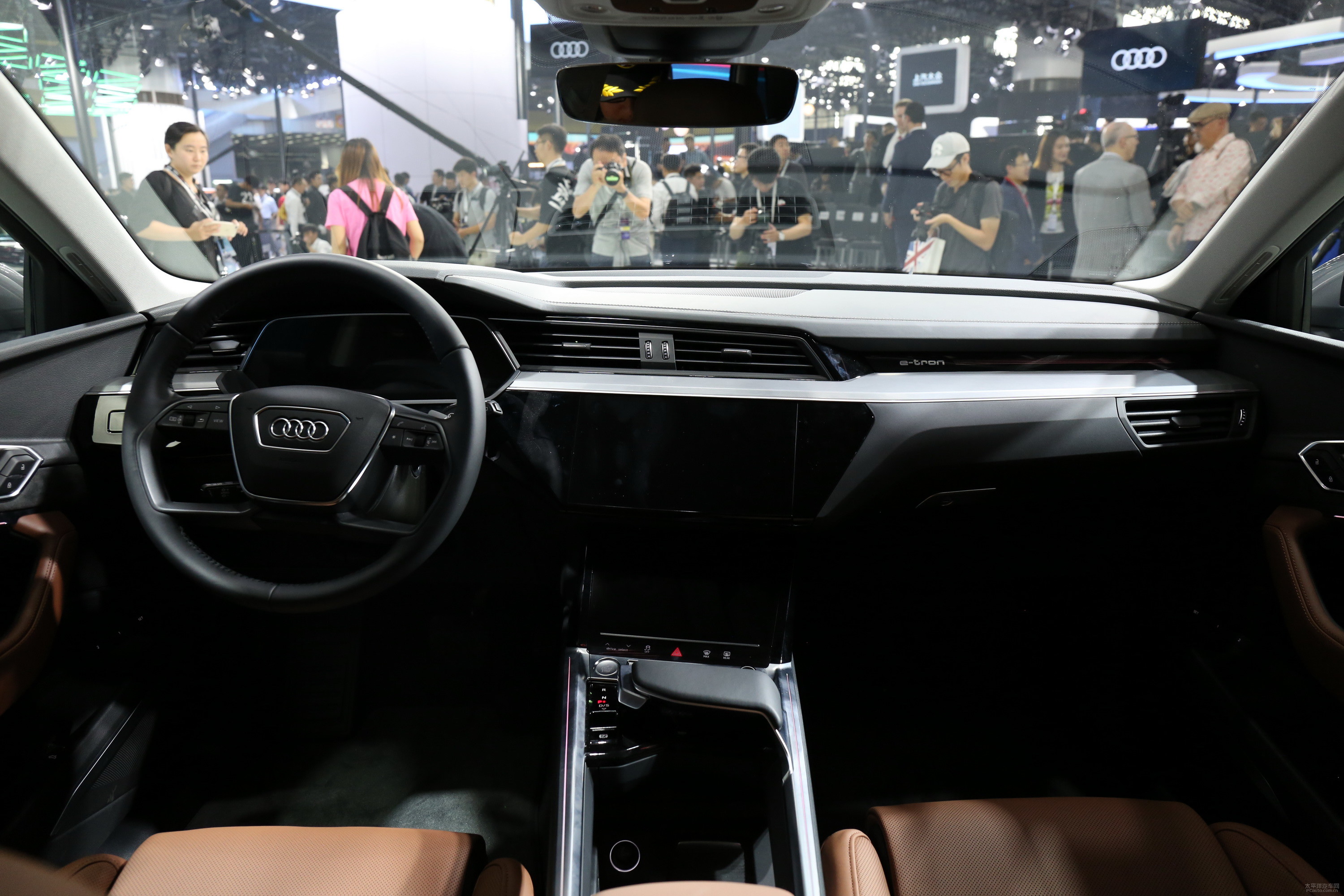 车内饰一部分,奥迪车e-tron选用了奥迪车最新消息的车内饰设计风格,总体好像与奥迪车A8类似。其有着全液晶显示屏仪表盘和双中控台显示屏,及其全新升级4幅健身运动造型设计的汽车方向盘。