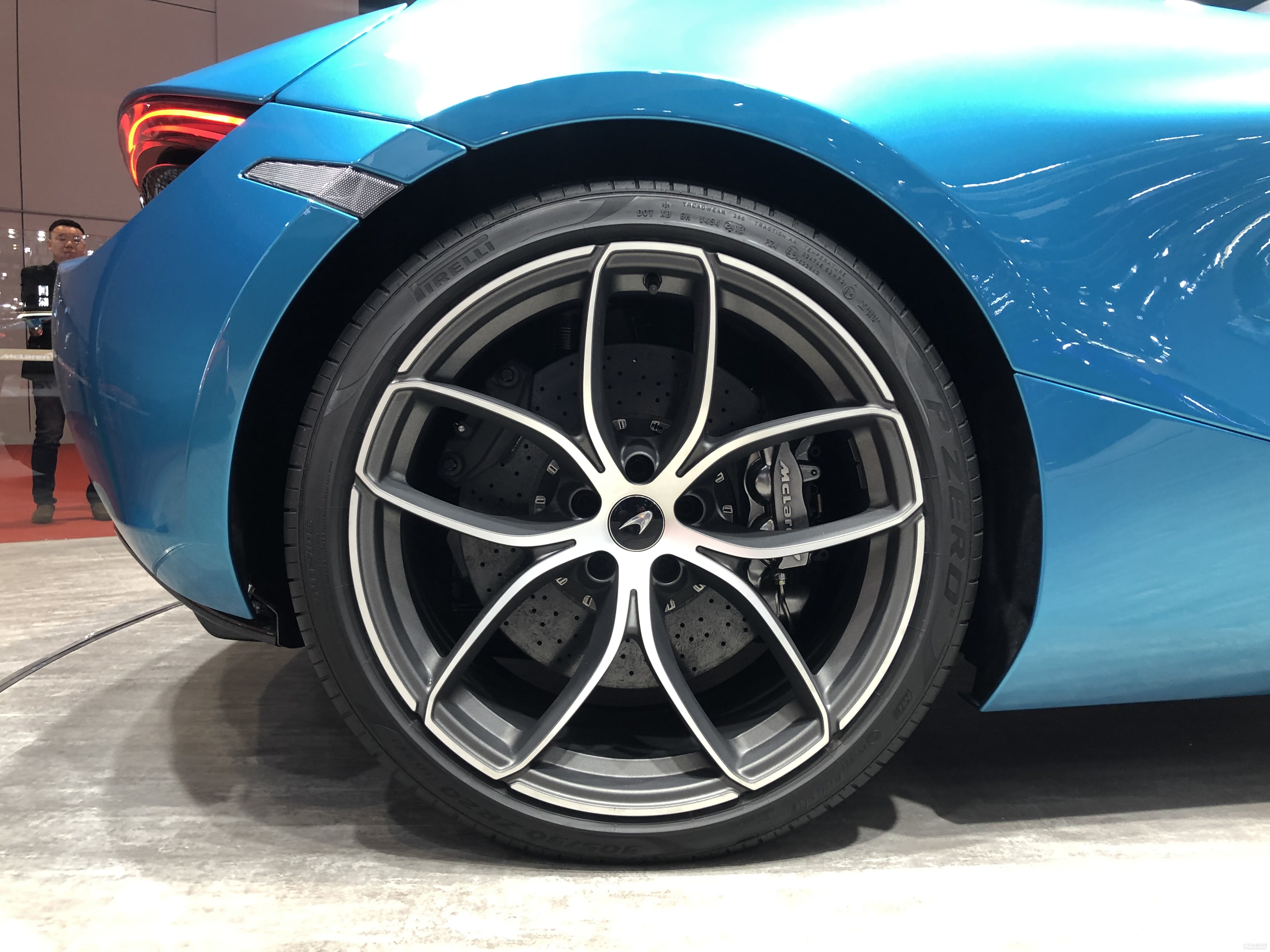 此车装配线了全新升级造型设计的前19寸、后20寸的轮圈,制动系统为碳陶刹车片+前对向6活塞杆/后对向4活塞杆的制动系统刹车盘。