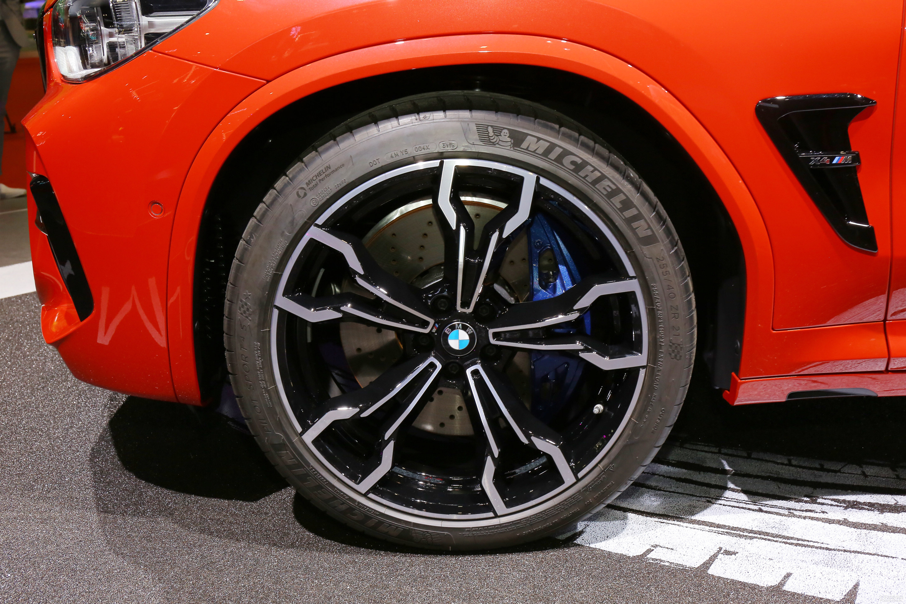 宝马五系X4 M专业版配置20英尺轮圈,而X4 M雷庭版的标准配备为21英尺轮圈,表层历经打磨抛光,以灰黑色展现出作战感十足的气魄。其尾端配置了鲨鱼鳍天线,选用多边共四出排气管设计方案。