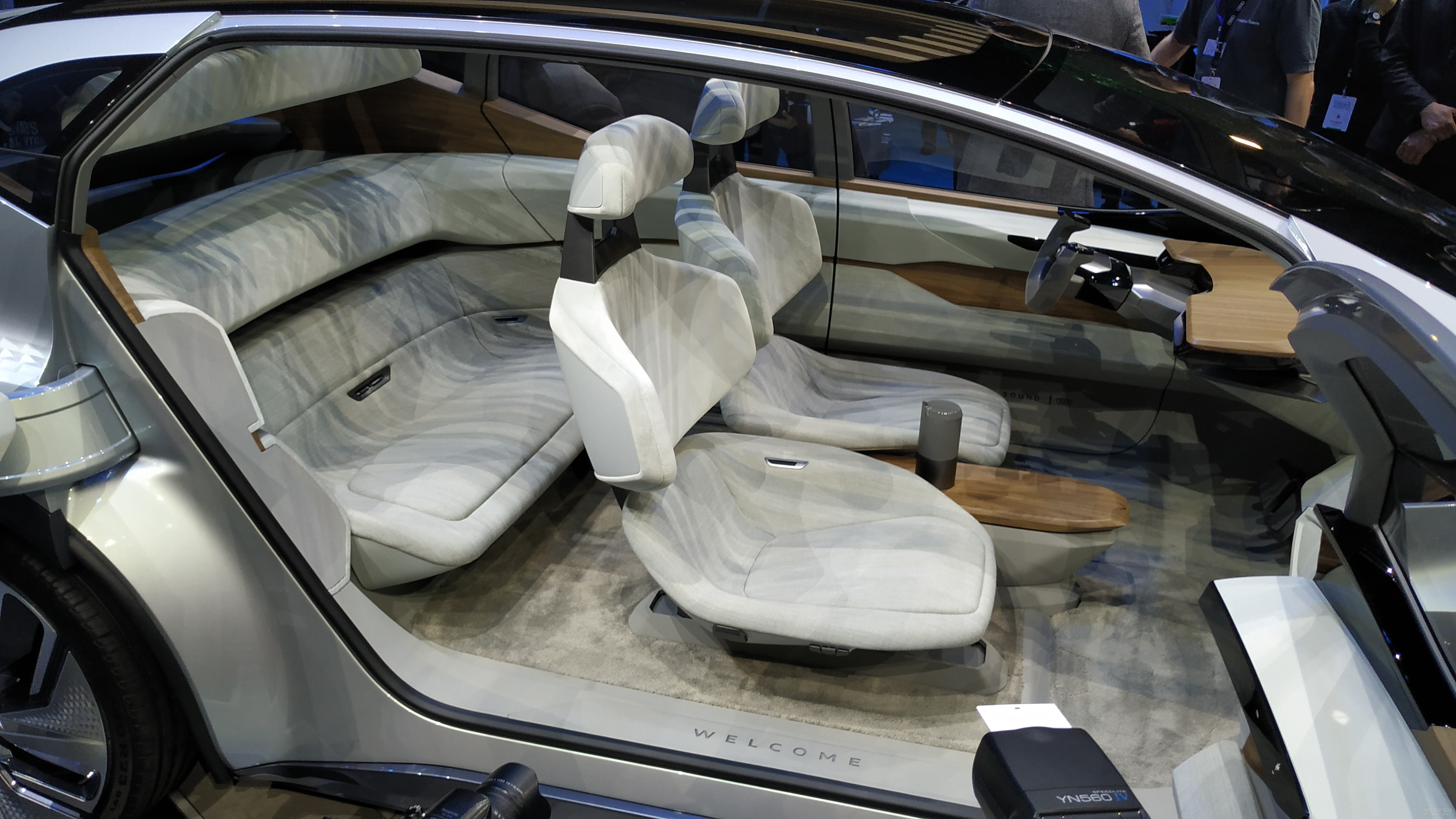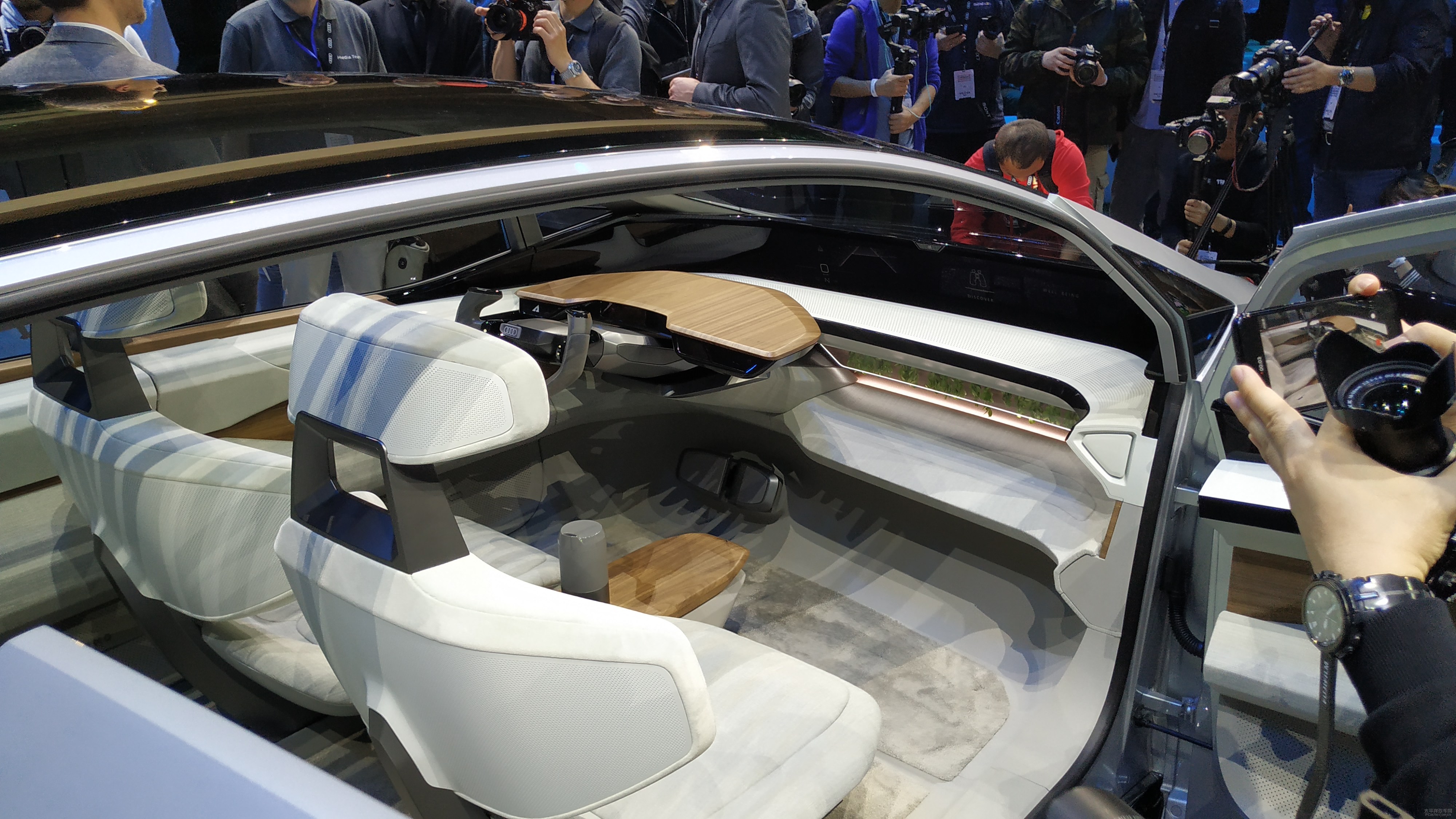 进到车里,新车内装饰与外观设计一样,一样具有未 来感,奥迪官方将其称之为“第三生活家居”,其仪表台上边被显示屏占有,可将交流与沟通、娱乐休闲、办公室等都可以在车里开展,其显示屏还具有裸眼3D作用。因为新汽车配用了无人驾驶的原因,当司机不应用汽车方向盘时,汽车方向盘还可收纳整理到司机正前方桌板下,为乘驾工作人员出示更充裕的娱乐休闲、工作中室内空间。