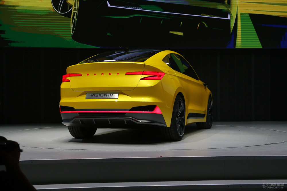 概念跑车的后尾造型设计看起来很结实,“C”型后尾灯有着非常好的识别度,电动式尾厢门边的鲜红色发亮式ŠKODA英文字母尾标都是车系尾端的一大闪光点。保险杠结合了下尾翼构造,鲜红色led灯带的装点为后尾增加了更丰富多彩的关键点。