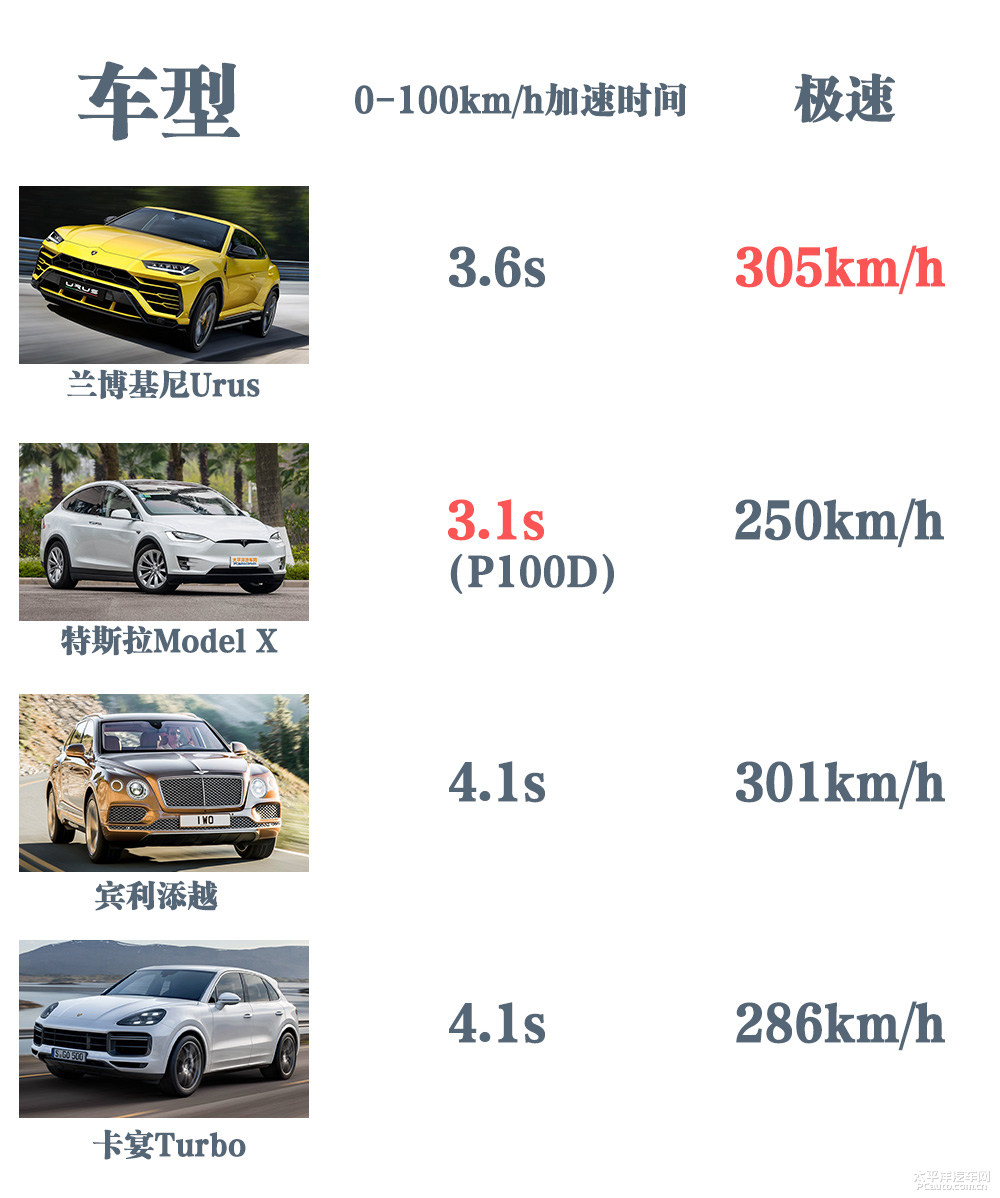 这是更快的SUV吗?多插一句嘴,那是更快的SUV吗?要不是电机舞弊一样的频率特性,Urus能够 圆满拿到0-100km/h加快更快和急速更快的双料冠军,很可是,Model X的超级变态破百加快考试成绩看上去基本上没将会汽油车跨越,除非是确实爆改为2000匹。