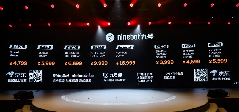 依据续航力及配备不一样,九号电动式E现有五款车系,各自是E80C、E90、E100、E125及其E200P。好多个版本号中,E200P是朝向高級游戏玩家的性能版本号,急速达到100km/h,较大续航力达到200km,0-40km/h加快時间3秒,并配置含有ABS前后左右双碟刹,BOSCH10代双通道内存防抱死制动系统(ABS),及其玛吉斯半热融健身运动车胎。