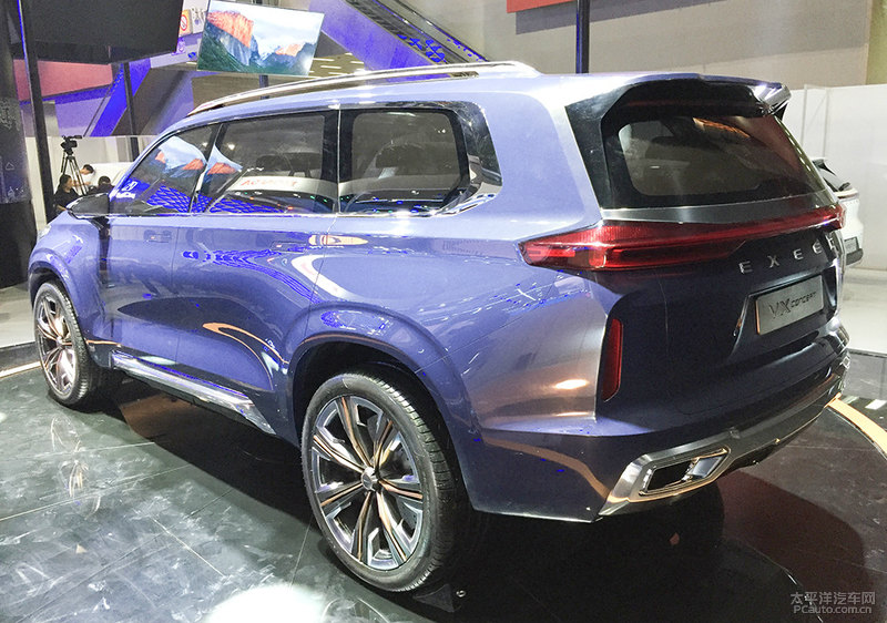 车体侧边,新汽车波导线及其轮廊都应用了竖直的线框,使其看上去非常粗犷。而在A柱前端开发与汽车引擎盖根处中间还置入了不锈钢饰条,嵌入有EXEED英文字母。内藏式门拉手的设计方案相互配合多副式轮毂相互配合中小型轮眉,尺寸较大的车体原素却很简约,十分好看。