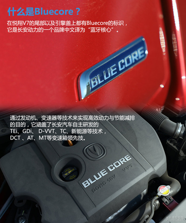 在悦翔V7的尾端及其发动机盖上常有Bluecore的标志,这是北京长安驱动力的一个知名品牌汉语译成“手机蓝牙关键”,目地是根据柴油发动机、变速箱等技术性来保持高效率驱动力与节能降耗的目地,它包含了长安汽车独立产品研发的TEi、GDi、 D-VVT、TC、新能源技术等技术性,DCT 、AT、MT等变速器领跑技,假如您关心过曰产的商品也会发觉相近的设计方案,很感兴趣的盆友能够 问一问百度知道里边详细介绍的许多 也很详尽,这里也不占有大伙儿宝贵时间了。