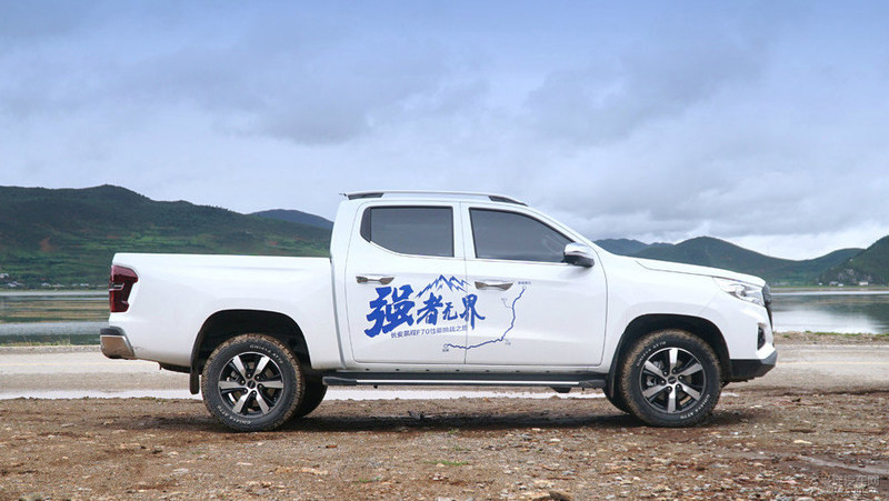 车体侧边宽敞的轮拱、灰黑色塑料材料遮盖的轮眉与高高地距地空隙说明凯程F70有着强劲的根据工作能力。新汽车出示长货箱版和规范货箱版二种车系,尺寸各自为5580(5330)/1930/1835mm(选配行李架车高为1875mm),轮距为3430(3180)mm,整备质量为2055kg。车胎层面,新汽车配置了265/65 R17或265/60 R18二种规格型号的车胎轮毂组。