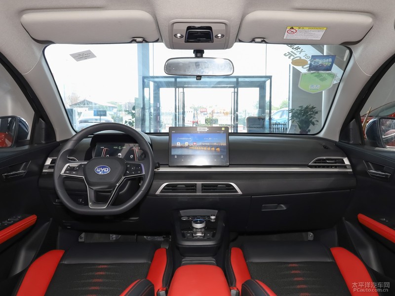 车内饰层面,新汽车內部线框有棱有角,选用的是三辐式真皮运动方向盘,车内饰色调上选用了黑红双色的色系搭配,在2个空调风口都再加了不锈钢装饰设计。新汽车选用的是全液晶显示屏仪表盘及其10.1中控台液晶显示屏(配用Dilink系统软件),将来或将配用BYD Heart集成化工作台,其包括安全驾驶、换档、性能模式、中央空调等作用于一体,进一步提高便捷性。