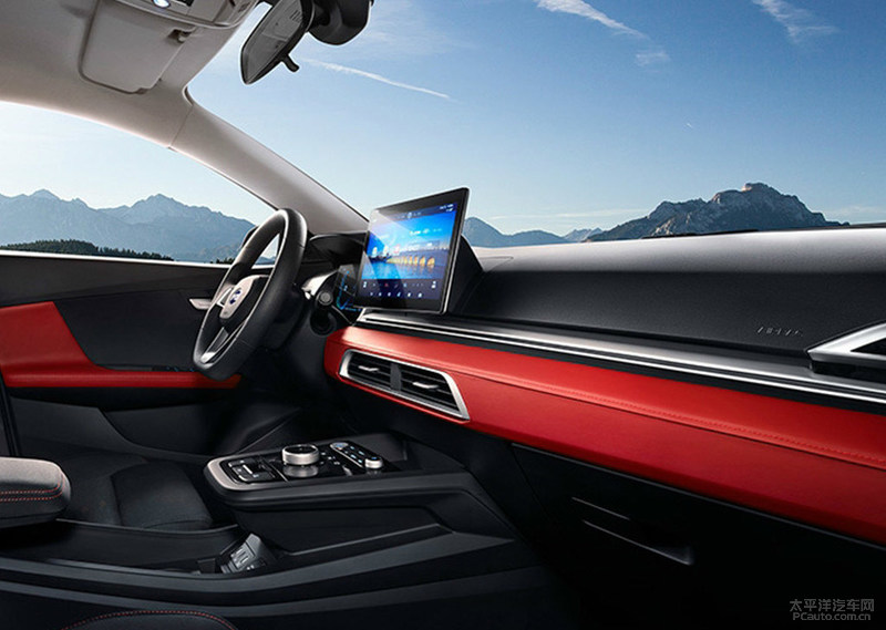 车内饰层面,新汽车內部线框有棱有角,选用的是三辐式真皮运动方向盘,车内饰色调上选用了黑红双色的色系搭配,在2个空调风口都再加了不锈钢装饰设计。新汽车选用的是全液晶显示屏仪表盘及其10.1中控台液晶显示屏(配用Dilink系统软件),将来或将配用BYD Heart集成化工作台,其包括安全驾驶、换档、性能模式、中央空调等作用于一体,进一步提高便捷性。