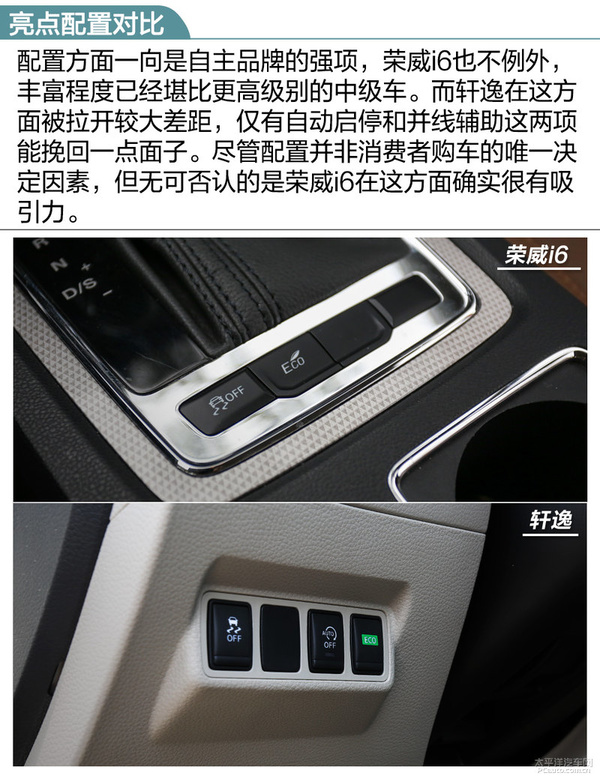 | 荣威汽车I6 20T 全自动互联网技术智臻版/轩逸 1.6L CVT智尊版车系配备差别 | ||