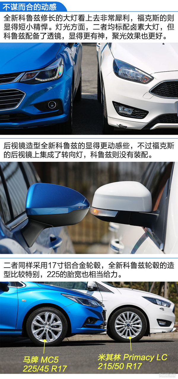 全新科鲁兹于福克斯的造型设计都非常紧凑型,两厢的造型设计让他们看上去十分健身运动。