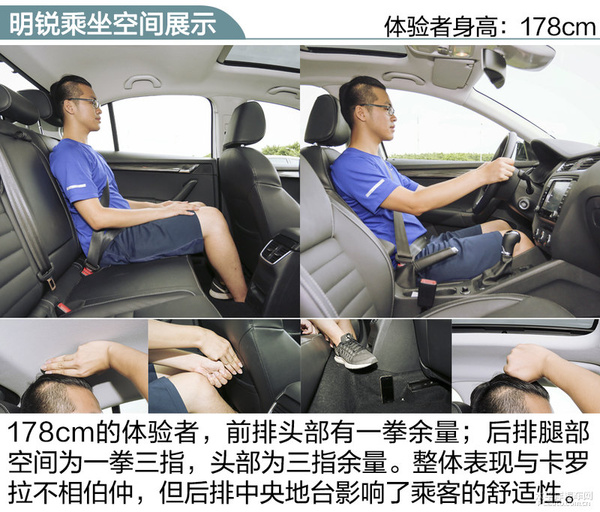 MQB服务平台的参数化设计让明锐的室内空间拥有挺大的提高,后排座的脚部室内空间已不困窘。从数据信息上看,明锐轮距比卡罗拉稍短些,但从具体感受看来,两辆车的头顶部和脚部室内空间相差无异。