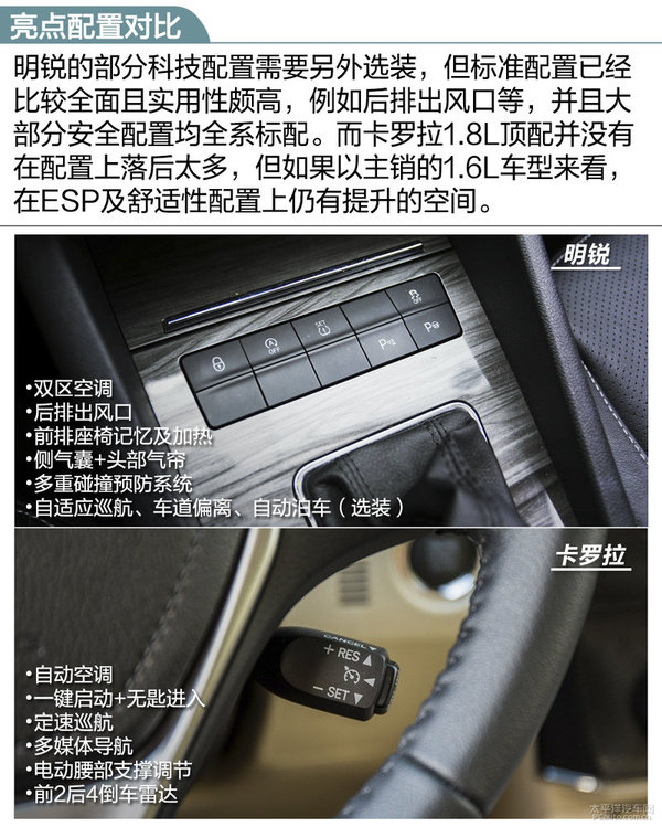 | 明锐/卡罗拉顶配车系配备差别 | ||