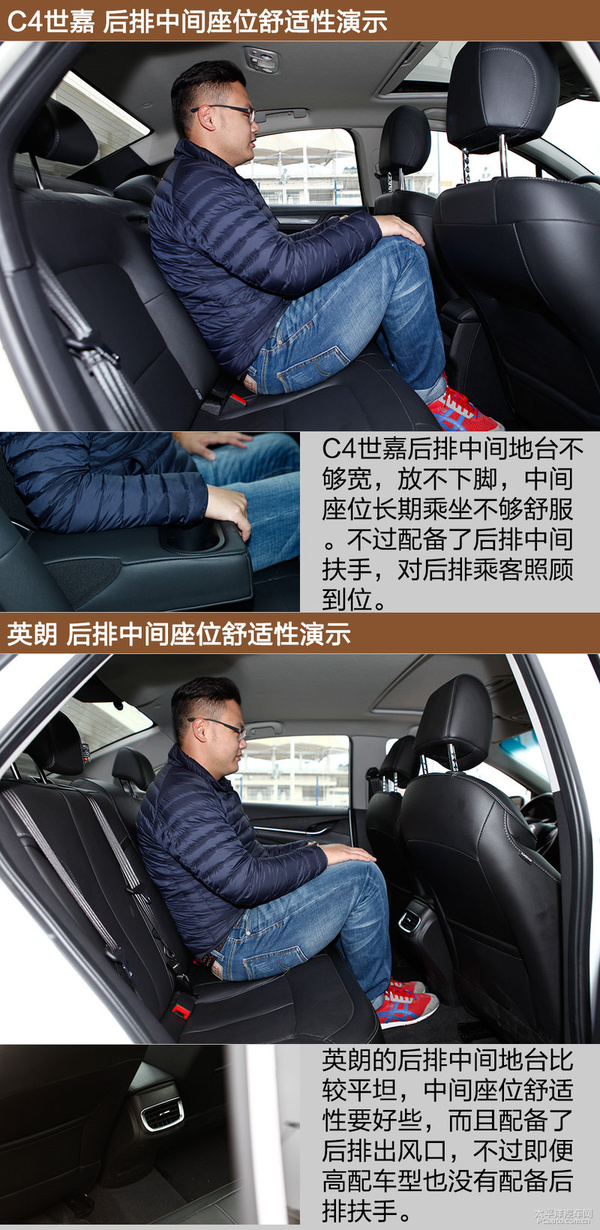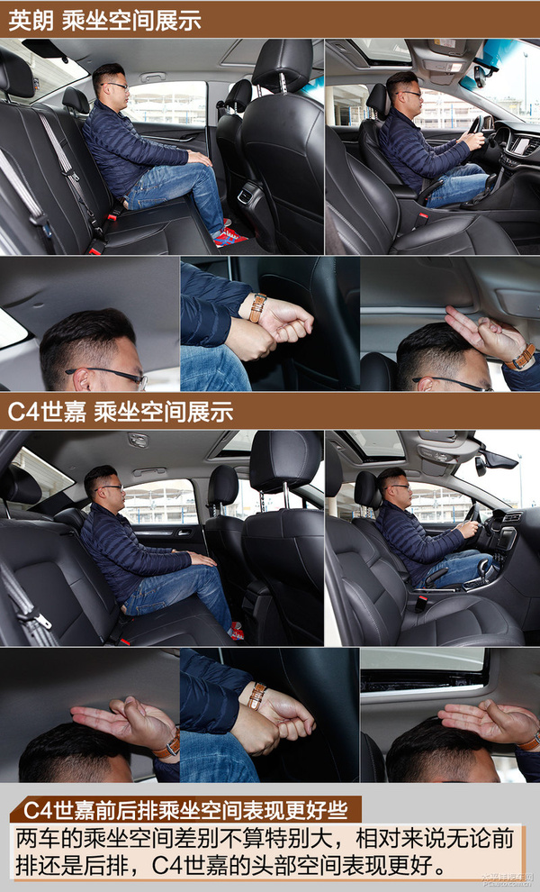 做为家用轿车,乘座室内空间的应用性当然是大伙儿更为注重的,特别是在是后排座室内空间。176cm女模特前座座姿调至适合的情况下,头顶部室内空间区别算不上大,C4世嘉为三指,而英朗则为两指。后排座的脚部室内空间一样为两拳,但是相对而言,C4世嘉的头顶部室内空间更要充足些,汇有两指的室内空间,而英朗则早已顶边。