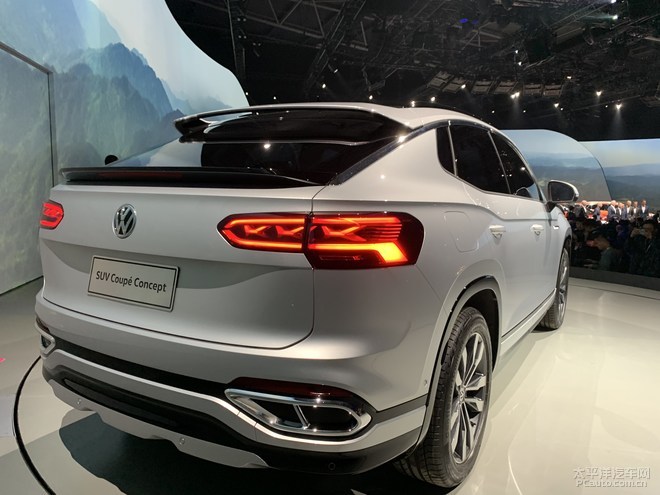 Coupe SUV的后尾造型设计很具特点:以车号牌地区为界,上边一部分造型设计简约,全新升级款式的后尾灯识别度较高;下边一部分则是狂野设计风格,保险杠造型设计略浮夸,多边双出的排汽管含有不锈钢装饰设计,级别感显著提高。
