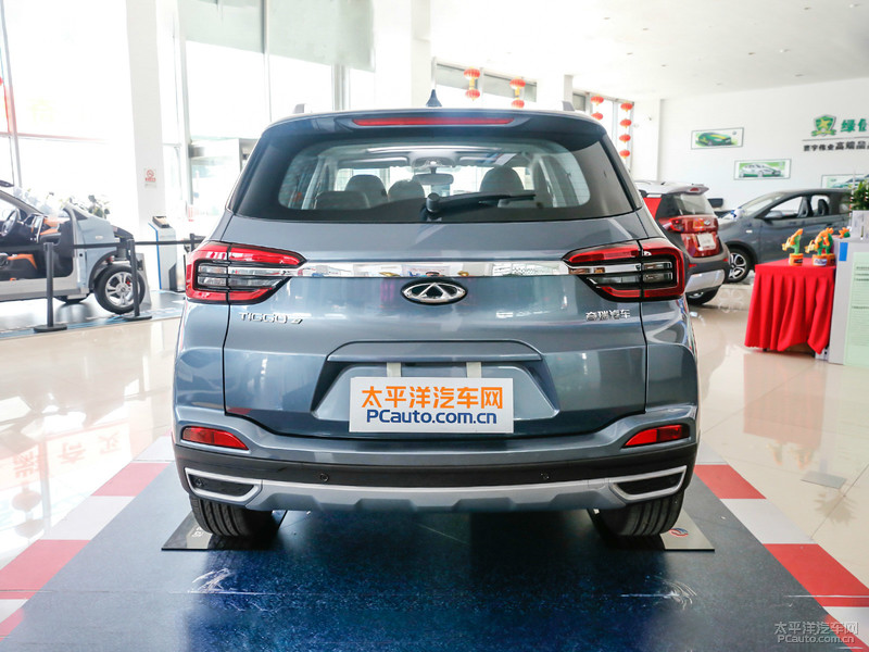后尾层面,瑞虎e选用了C字型后尾灯设计构思,并由一根不锈钢装饰条围绕至前灯內部,为全车产生质感。除此之外,灰黑色保险杠所加上的银白色装饰板再一次显出瑞虎e的粗犷气场。