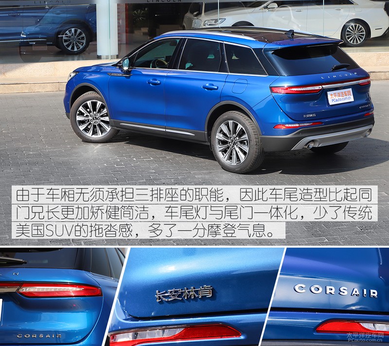 侧边的悬浮式车顶设计构思及其好几条波导线蜿蜒曲折,具有时尚潮流炫酷,在前翼子板处还标着CORSAIR英语标志。车体规格层面,国内林肯汽车探险家的尺寸各自为4615/1887/1630mm,轮距为2711mm,规格超过该款林肯汽车MKC。